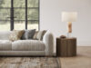 A unique accent piece that will add luminous ambience to any room, the Admiral Table Lamp features a combination of hand-crafted wood and a crystal base that will offset any home decor. The natural variations in grain, colouring and knots of the wood pair effortlessly with the classic drum linen shade.