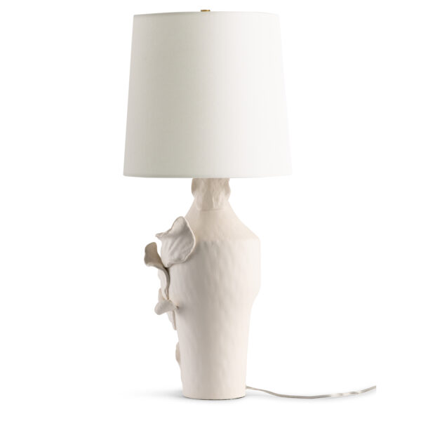 The Aiko Table Lamp springs to life with realistic flower petals that stand out from its surface. This lamp is handcrafted from ceramic with a matte off-white finish that allows every sculptural detail to shine. Slight variations in the finish are an expected and desirable part of the artisanal production process.