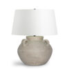This bold ceramic table lamp will add a sense of earthy ambiance to any interior setting. Expertly molded by ceramicists, the domed base of the lamp is reminiscent of a Grecian urn and is sure to be the focal point of any room. The antique cream finish on the ceramic base will lend a classical touch to any room or hallway.