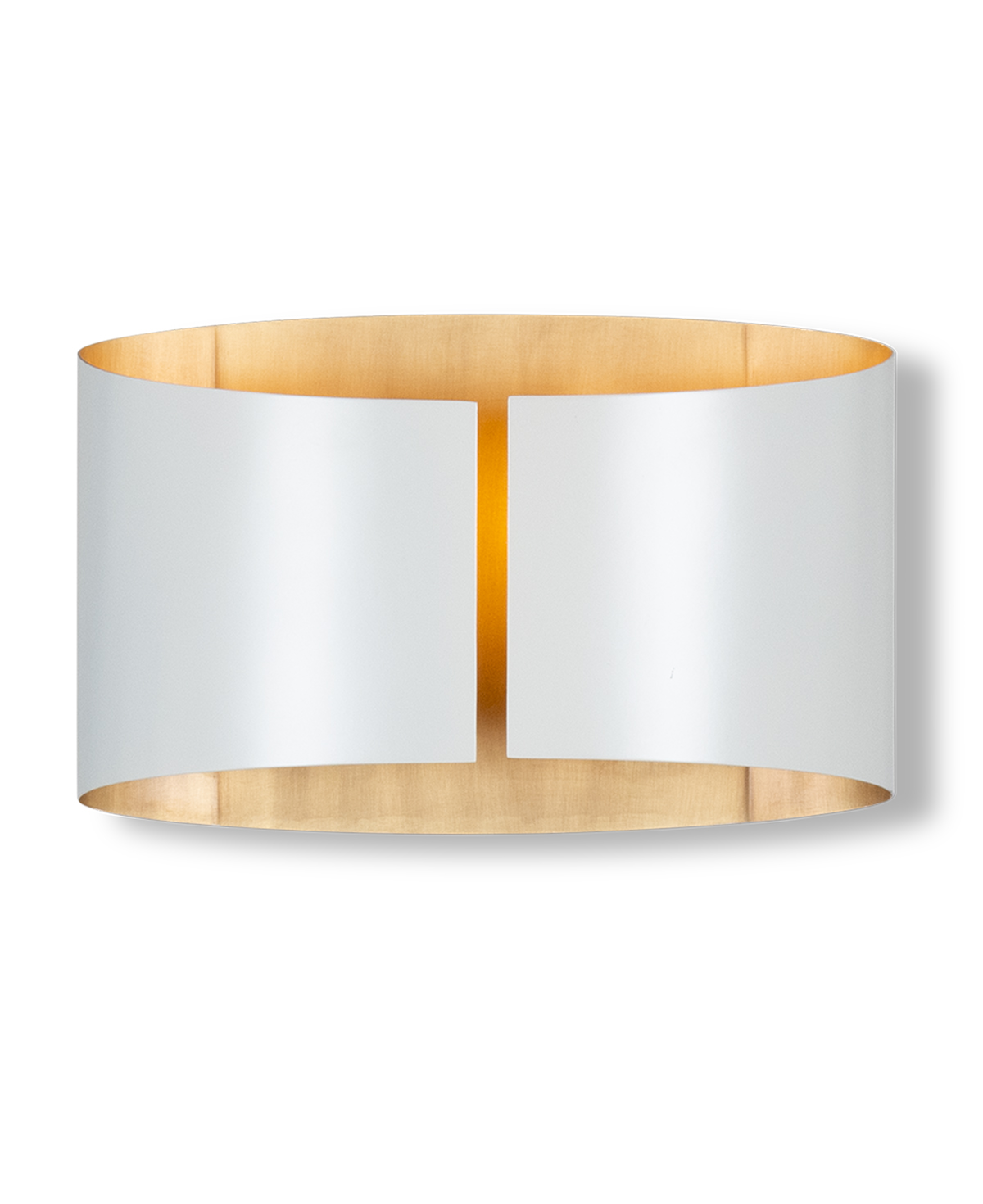Expertly crafted with a clean matte white casing and finished with a warm brass internal coating, this decadent wall sconce is easy to pair with any current home design. The warm colors add a gentle and welcoming feel to your home, even when the light’s not on; meanwhile, the small split down the center of the shade captivates any visitor’s attention.