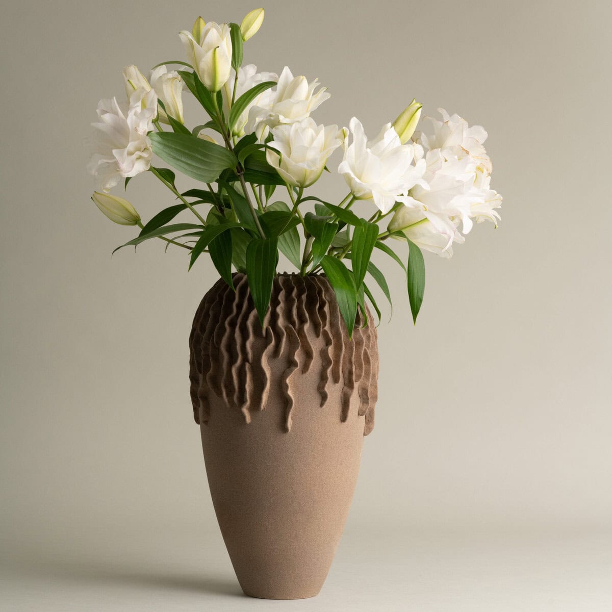 DIMENSIONS: 16.75″H x 10″øFINISH: ceramic, brownWEIGHT: 13 lbs