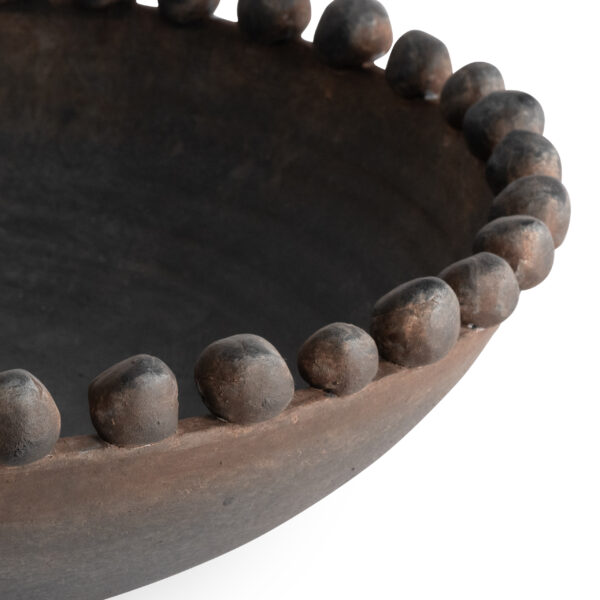 The organic shape and earthenware design make the Raleigh Bowl the perfect receptacle for those looking to add a rustic accent to their home. Finished with an intriguing array of hand-shaped ceramic balls around the rim, this bowl is sure to impress.