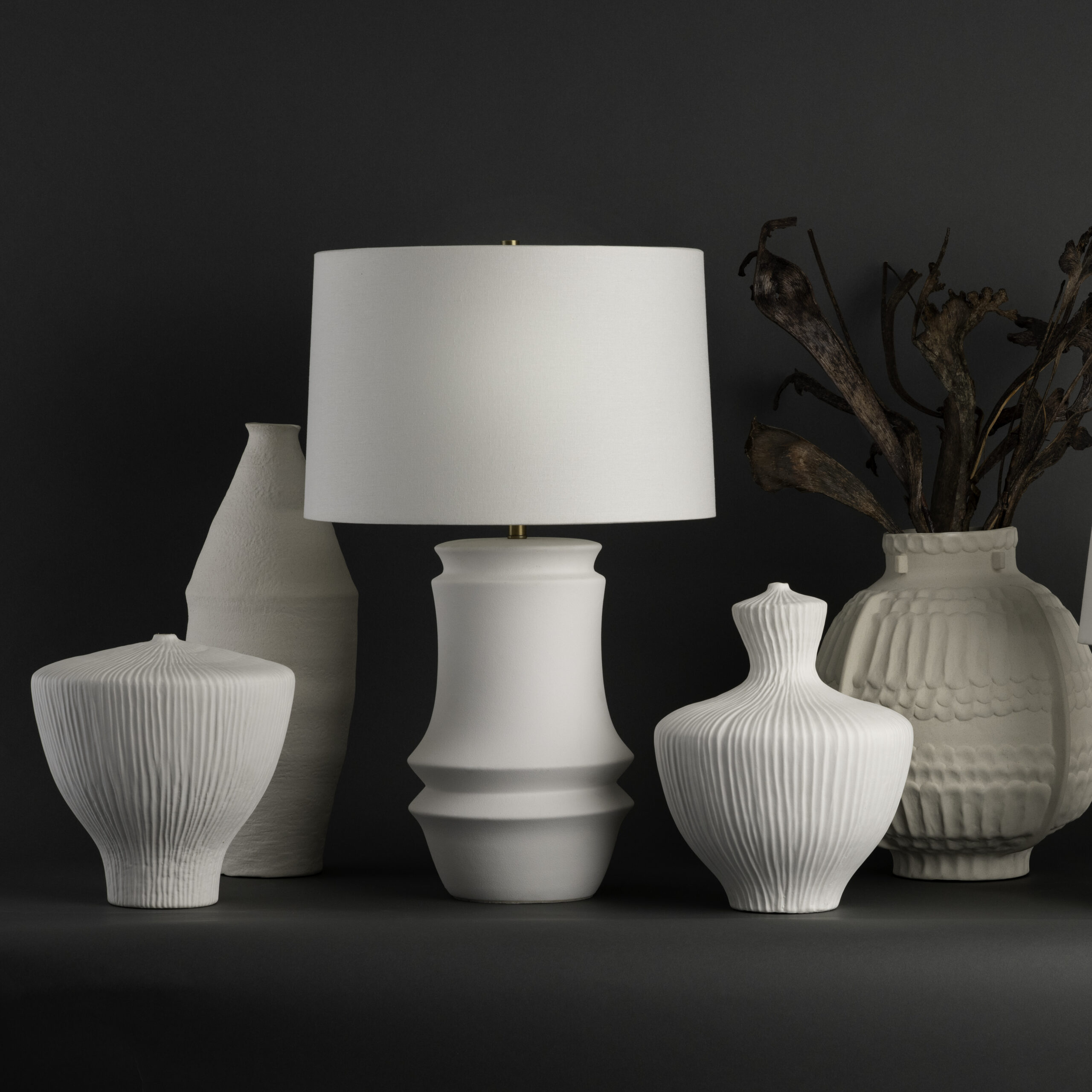 Decorate your home in timeless style with this textured ceramic vase. An instant modern classic, the Steven Vase features a ribbed profile with a natural off-white ceramic finish. Add this vessel to a sideboard or a corner table for an instant aesthetic upgrade in your home.
