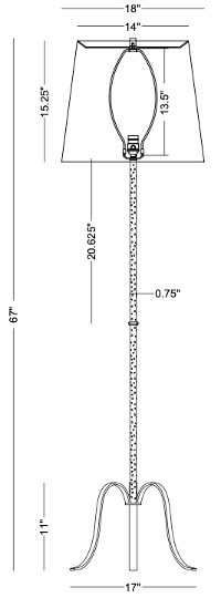 HEIGHT: 67″HFINISH: metal, antique brass finishSHADE: tapered drum; 14″ø(t) x 18″ø(b) x 15.25″HSOCKET: 150W 3-wayWEIGHT: 7 lbs