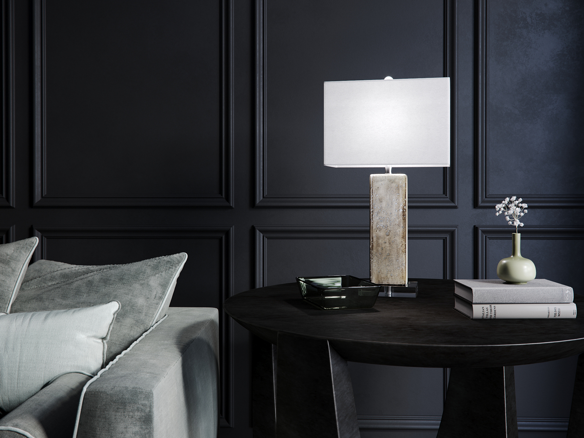A Dark Champagne Metallic finish provides a hip, artisan vibe on this short rectangular table lamp. An white cotton shade brightens the look, which would add an organic quality to a modern living room or bedroom. The lamp’s handmade nature means that each piece is unique.