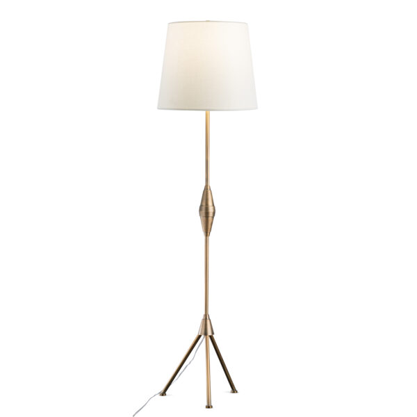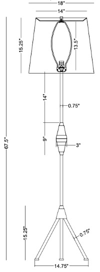 HEIGHT: 67.5″HFINISH: metal, antique brass finishSHADE: tapered drum; 14″ø(t) x 18″ø(b) x 15.25″HSOCKET: 150W 3-wayWEIGHT: 9 lbs