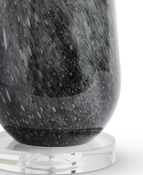 Crafted with an eye-catching crystal glass base for a touch of luxury, this sleek table lamp is easy to pair with any aesthetic. The charcoal tones and simple linen lampshade present an ideal pairing that will complement any interior setting.